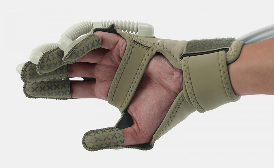 这款符合人机工学的手套,可清洗、耐用且舒适。为患者提供了小号、中号和大号的尺寸选择。患者可以通过中央控制装置轻松调节气压,以找到适合他们的强度。