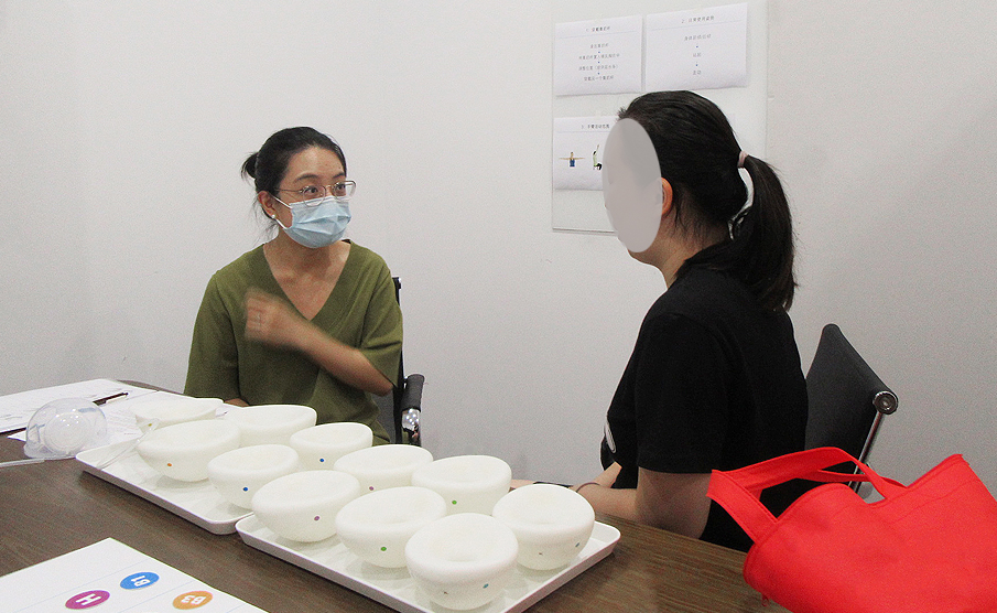 在设计验证原型阶段,我们专门做了一次针对舒适性的用户测试,招募了几组不同罩杯的用户,用3D打印模型模拟不同尺寸、不同弧度的喇叭罩,邀请她们穿戴并收集反馈,从而得出能满足大部分用户的最佳罩杯形状。
